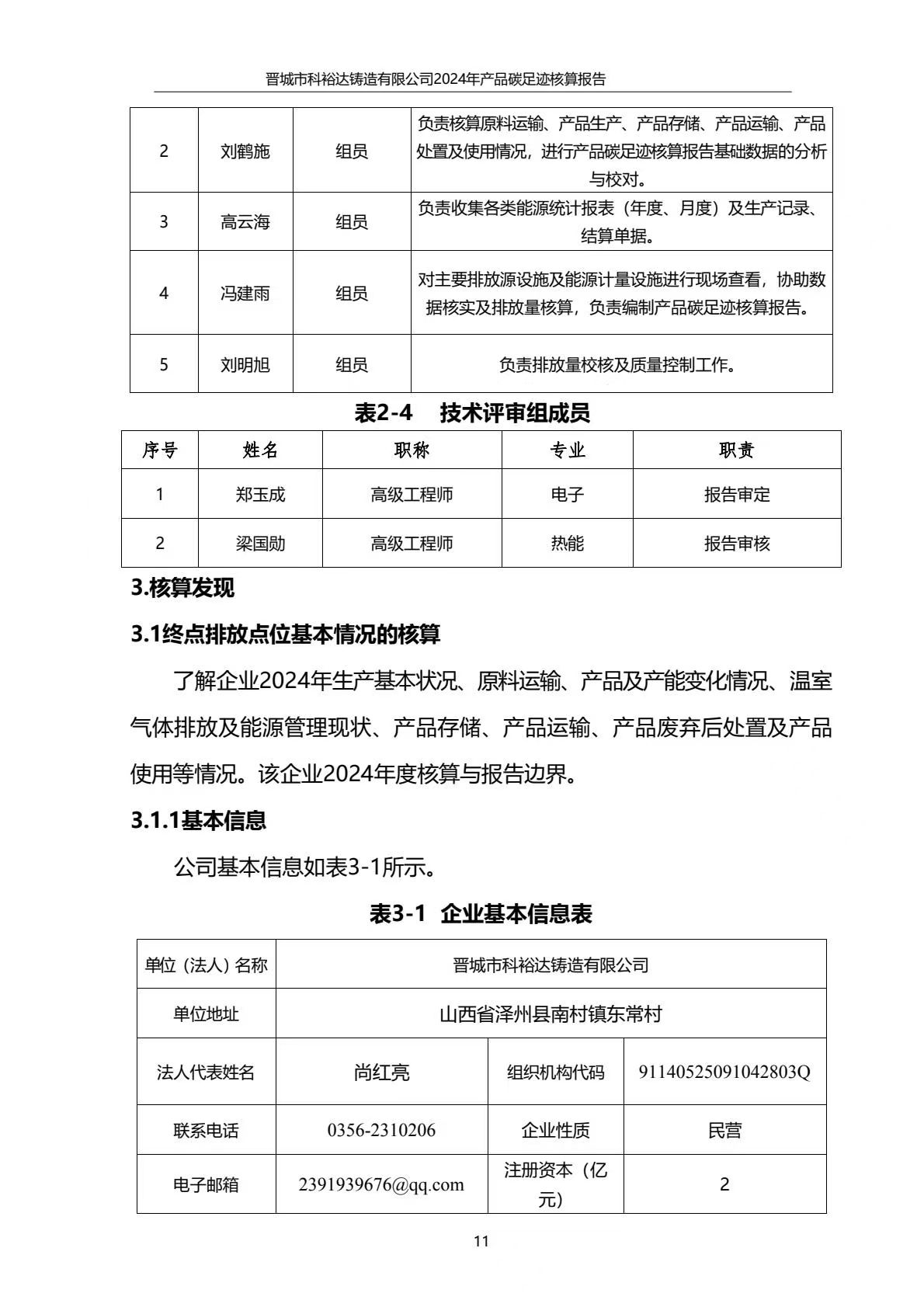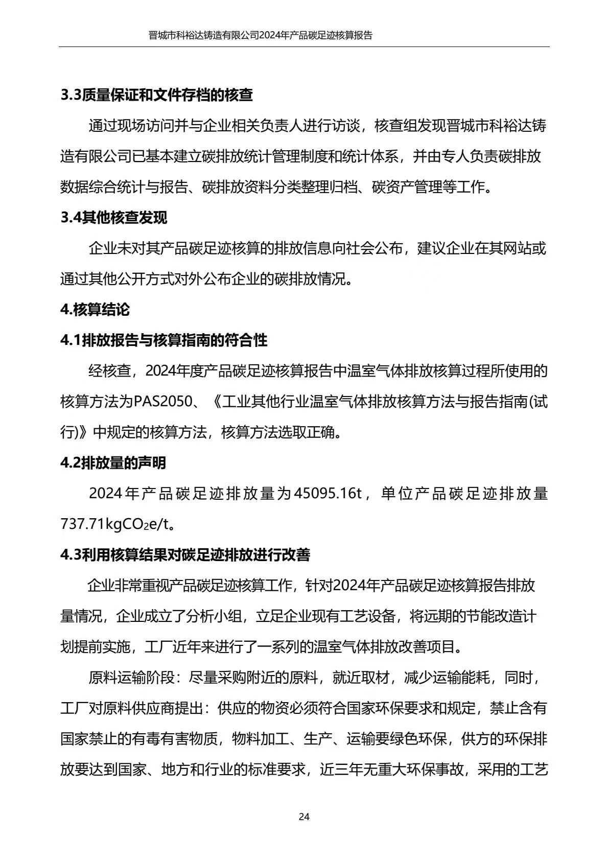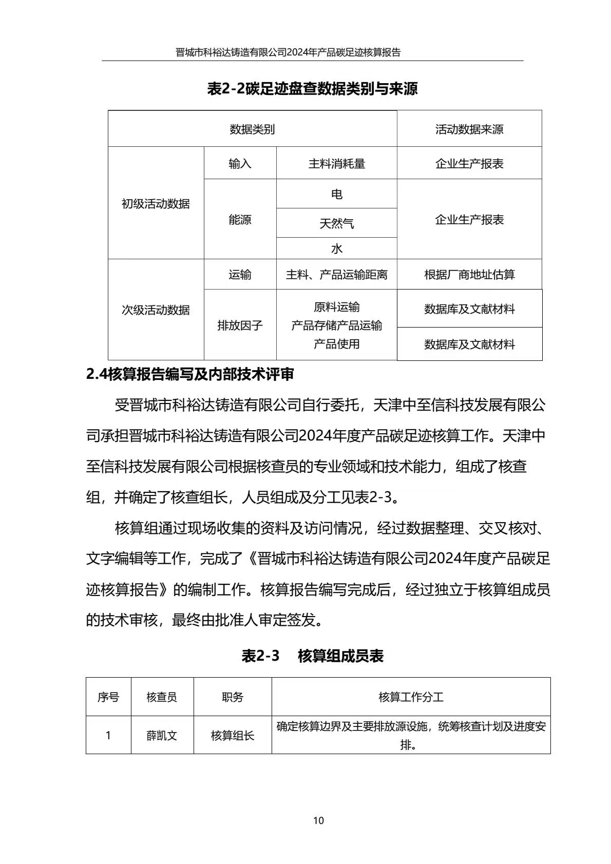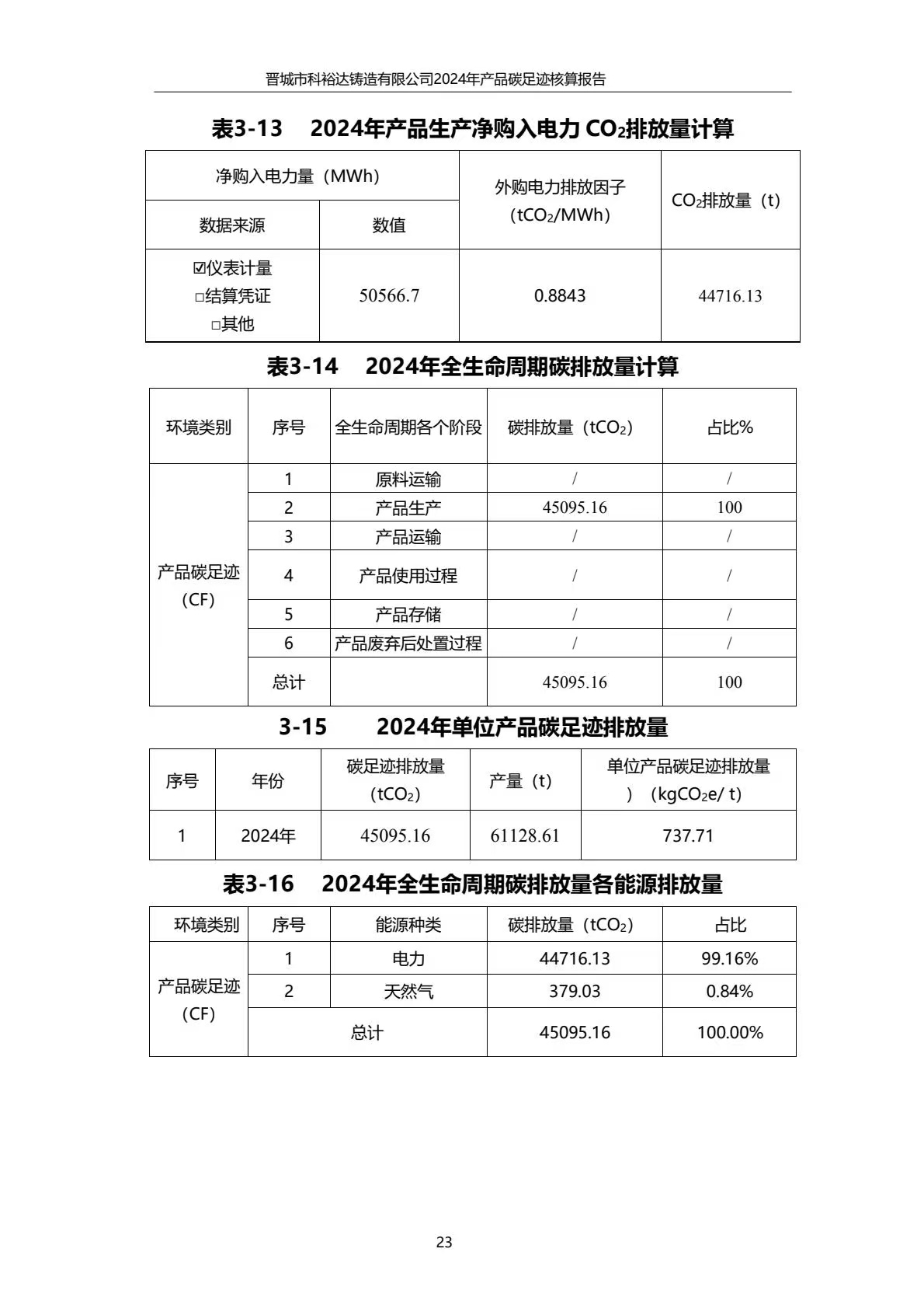晉城市科裕達(dá)鑄造有限公司碳足跡報(bào)告