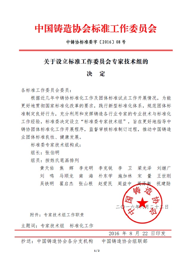 關(guān)于設(shè)立標準工作委員會專家技術(shù)組的決定
